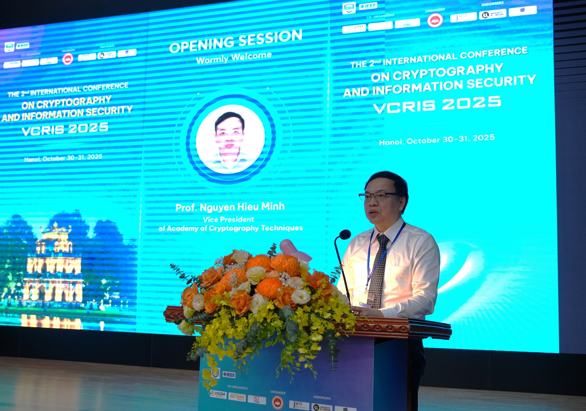 Trường An15:05 | 31/10/2025Trong hai ngày 30 – 31/10/2025, tại Học viện Kỹ thuật mật mã diễn ra Hội thảo khoa học quốc tế về Mật mã và An toàn thông tin lần thứ II (VCRIS 2025). Sự kiện này không chỉ là diễn đàn để công bố các kết quả nghiên cứu mới, mà còn là cầu nối quan trọng gắn kết nghiên cứu với thực tiễn, tạo nên sự đồng bộ giữa học thuật, công nghiệp và cơ quan quản lý trong lĩnh vực mật mã và an toàn thông tin. -