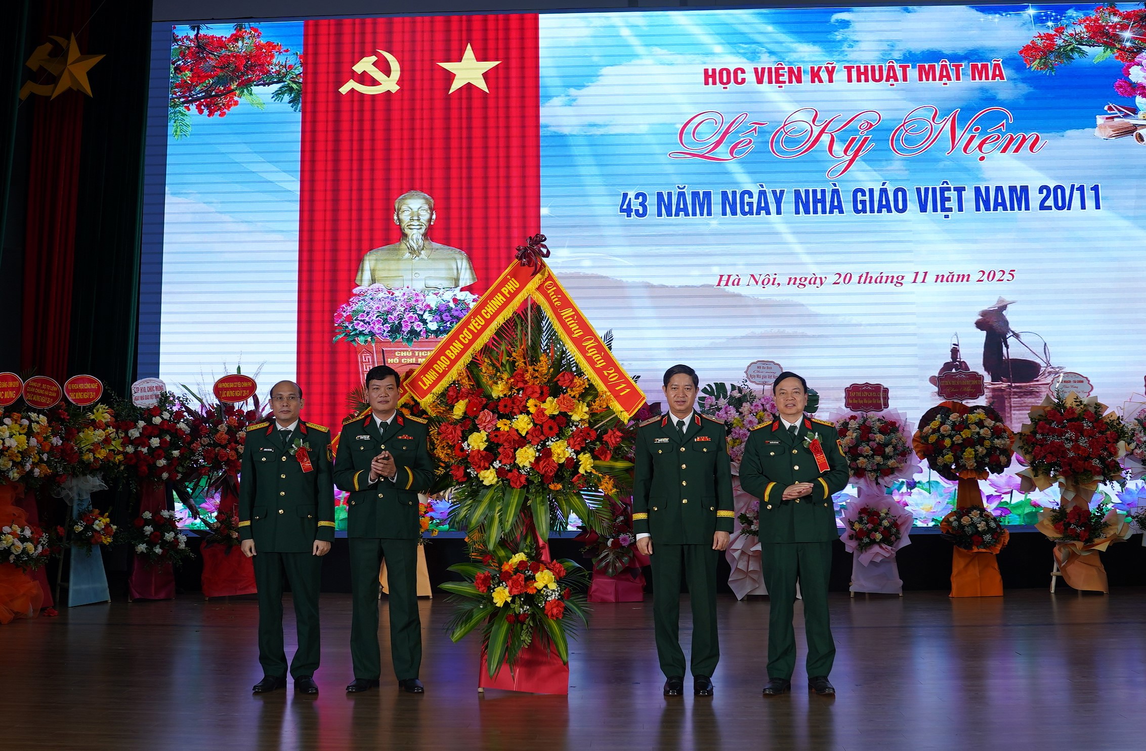 Quốc An16:54 | 21/11/2025Sáng 20/11, Học viện Kỹ thuật mật mã long trọng tổ chức Lễ kỷ niệm 43 năm Ngày Nhà giáo Việt Nam. Buổi Lễ nhằm tri ân các thế hệ thầy, cô giáo đã có nhiều đóng góp trong công tác đào tạo, nghiên cứu khoa học và phát triển nguồn nhân lực trong lĩnh vực cơ yếu, an toàn thông tin và công nghệ thông tin cho đất nước. Tham dự buổi lễ có Thiếu tướng Nguyễn Hữu Hùng, Phó Trưởng ban Ban Cơ yếu Chính phủ; đại diện các đơn vị chức năng thuộc Ban; lãnh đạo Học viện cùng đông đảo cán bộ, giảng viên, học viên của Học viện. -