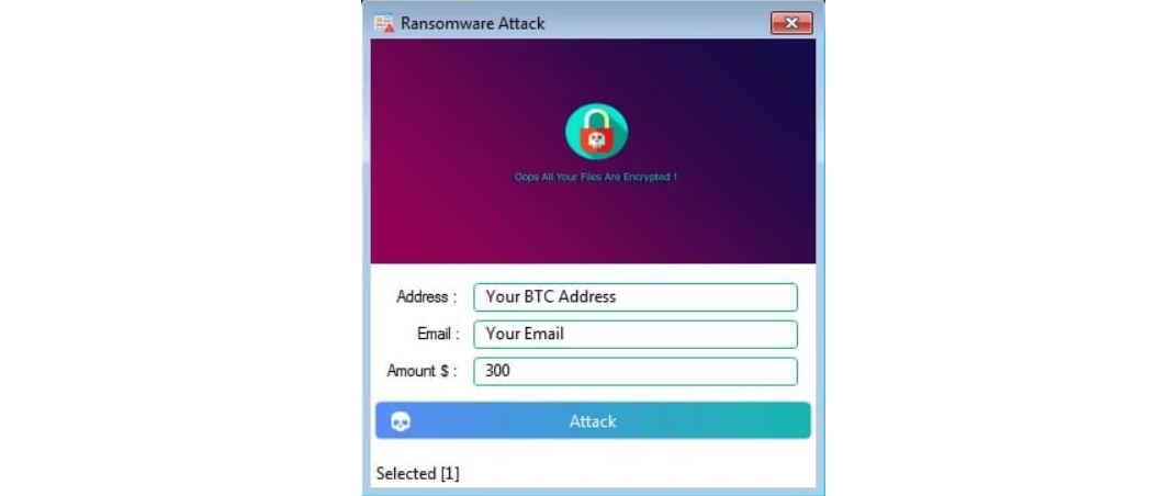 Với chức năng mã hóa tệp (Ransomware.dll), cho phép kẻ điều khiển phần mềm độc hại đặt hình nền máy tính sau khi khóa dữ liệu, số tiền chuộc, địa chỉ ví và email liên hệ.