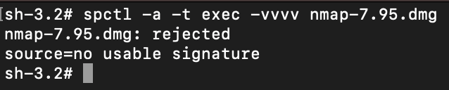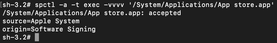 Tiện ích spctl được sử dụng để quản lý Gatekeeper. Dưới đây là ví dụ về cách gọi spctl để kiểm tra tính hợp lệ của chữ ký và liệu chữ ký đó đã được Apple xác minh hay chưa: “Spctl -a -t exec -vvvv