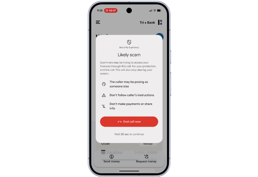 Google cho biết tính năng này bảo vệ chống lại một hình thức lừa đảo phổ biến mà tội phạm mạng “mạo danh ngân hàng hoặc các tổ chức đáng tin cậy khác trên điện thoại để cố gắng thao túng nạn nhân chia sẻ màn hình nhằm tiết lộ thông tin ngân hàng hoặc thực hiện chuyển khoản tài chính”.
