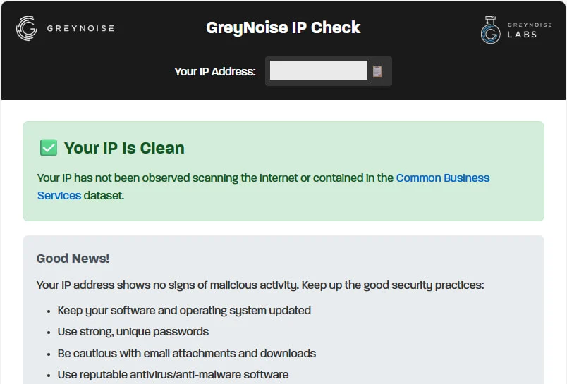 Theo GreyNoise, những người truy cập trang web của công cụ mới này sẽ nhận được một trong ba kết quả bao gồm: