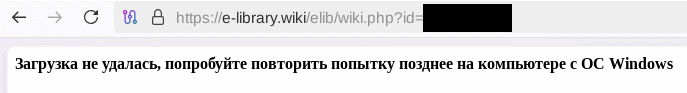 - Tải xuống một tệp PDF giả mạo từ một URL có định dạng: https://e-library[.]wiki/pdf/<8 pseudorandom letters and digits>.pdf. Tệp PDF này đã được lưu vào thư mục Download của người dùng với tên tệp có định dạng:
