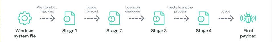 Việc lưu trữ DLL theo các đường dẫn trên mang lại lợi ích cho kẻ tấn công, vì việc đặt các thư viện có tên này bên trong thư mục System32 giúp tự động đảm bảo tính bền vững. Nếu có trên hệ thống tệp, các DLL sẽ tự động được tải khi khởi động (hai DLL đầu tiên được tải vào tiến trình svchost.exe, trong khi DLL thứ hai được tải vào msdtc.exe) bởi kỹ thuật Phantom DLL Hijacking.