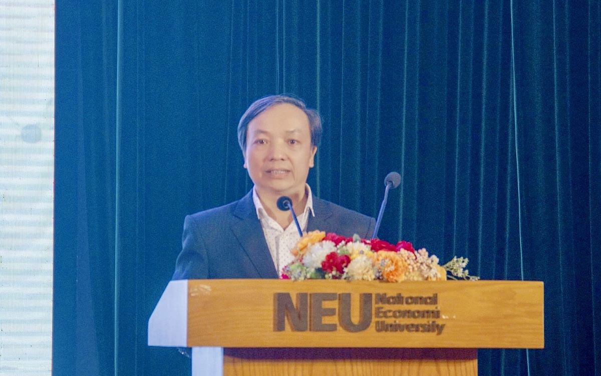 TS. Nguyễn Quang Huy, Hiệu trưởng Trường Công nghệ, Đại học Kinh tế Quốc dân phát biểu tại Hội thảo