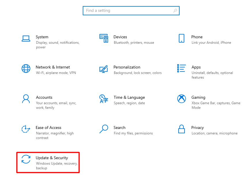 Bước 2: Cửa sổ hiện ra kích chọn Update & Security.