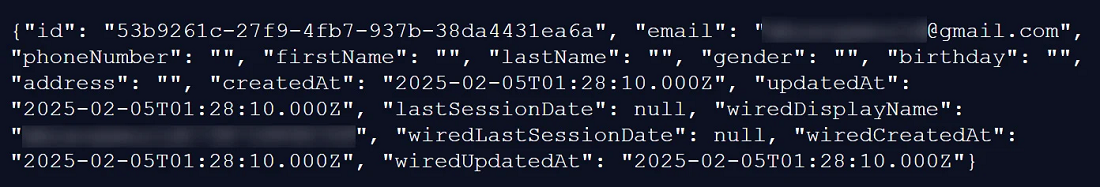 Các bản ghi này cũng bao gồm dấu thời gian tạo và cập nhật tài khoản, thông tin phiên truy cập cuối cùng và các trường thông tin dành riêng cho WIRED như tên người dùng hiển thị và ngày tạo cũng như cập nhật tài khoản WIRED.