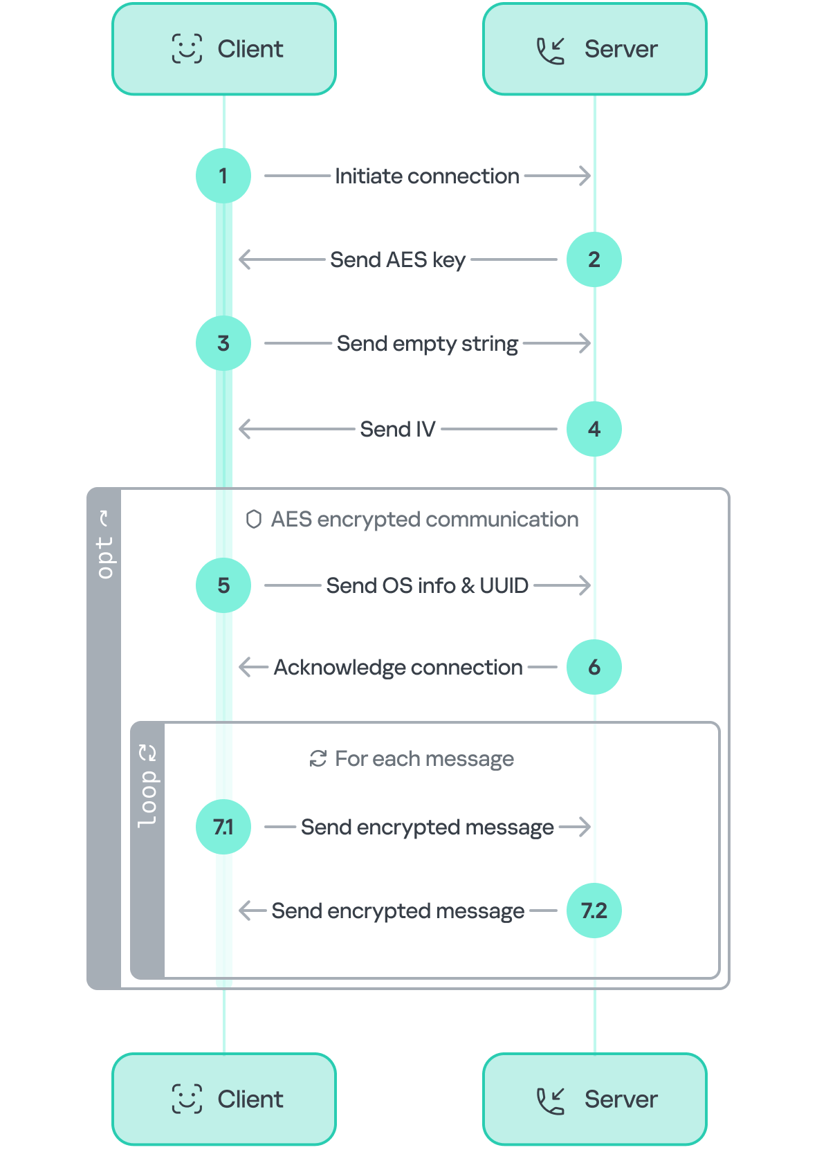 4. Sau đó, máy chủ sẽ gửi một giá trị nonce (IV), cho phép sử dụng giao tiếp được mã hóa từ thời điểm đó trở đi. Mã hóa là bắt buộc cho tất cả các giao tiếp tiếp theo.