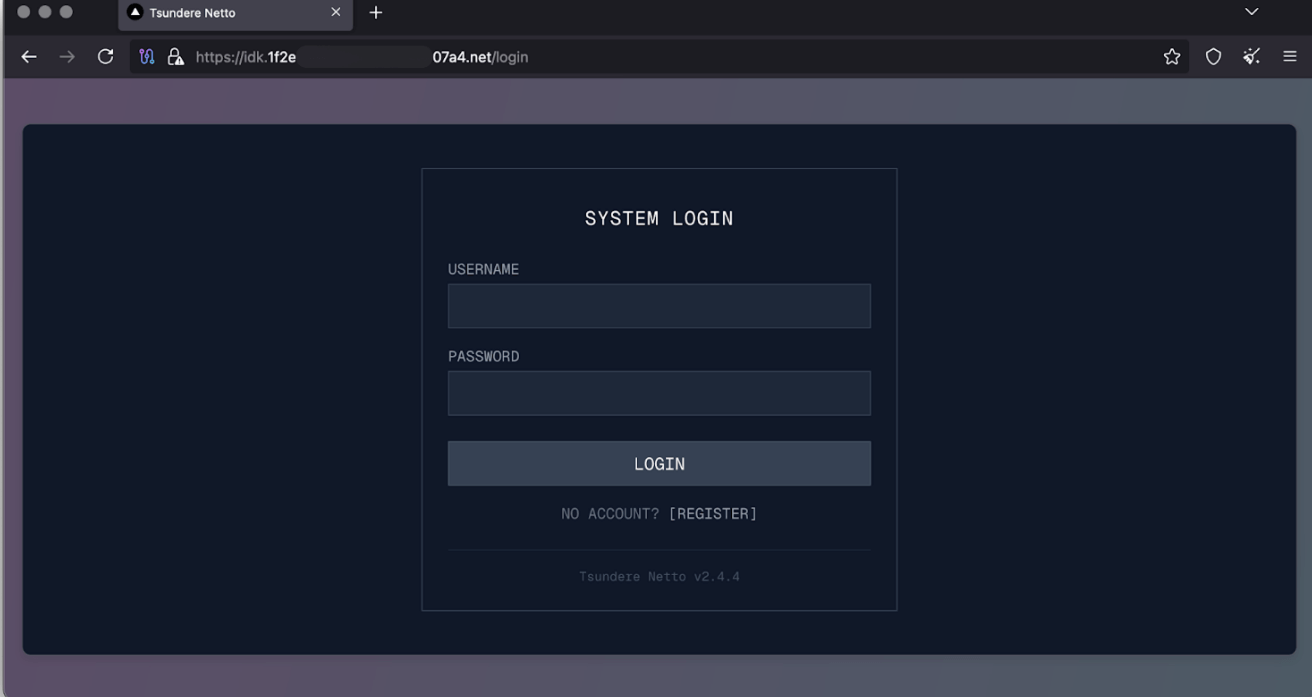 Điểm đáng chú ý của bảng điều khiển Tsundere, được gọi là “Tsundere Netto” (phiên bản 2.4.4), là nó có hệ thống đăng ký mở. Bất kỳ người dùng nào truy cập vào biểu mẫu đăng nhập đều có thể đăng ký và truy cập vào bảng điều khiển, bao gồm nhiều tab khác nhau: