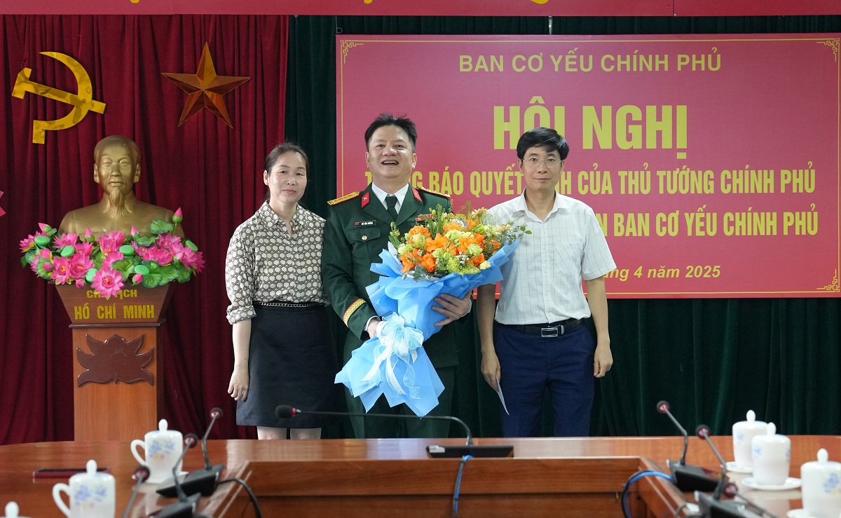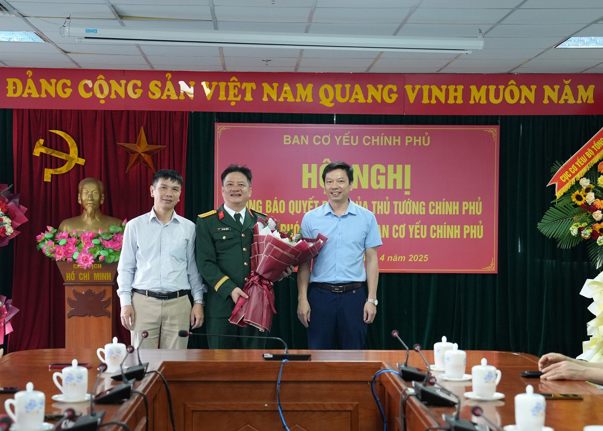 Cũng trong ngày 28/4/2025, Thừa ủy quyền của Thủ tướng Chính phủ, Đại tướng Phan Văn Giang, Ủy viên Bộ Chính trị, Phó Bí thư Quân ủy Trung ương, Bộ trưởng Bộ Quốc phòng đã trao Quyết định của Thủ tướng Chính phủ cho đồng chí Đại tá Hồ Văn Hương, tân Phó Trưởng ban Ban Cơ yếu Chính phủ.