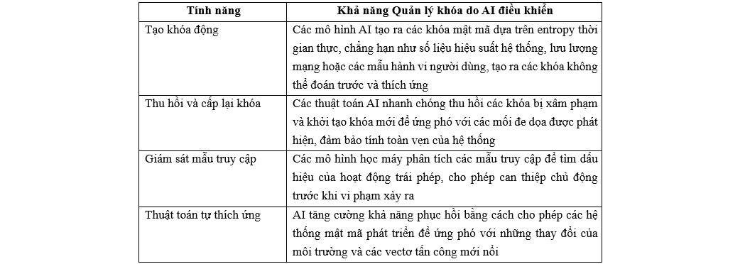Bảng 3. Khả năng của AI trong việc tạo và quản lý khóa động