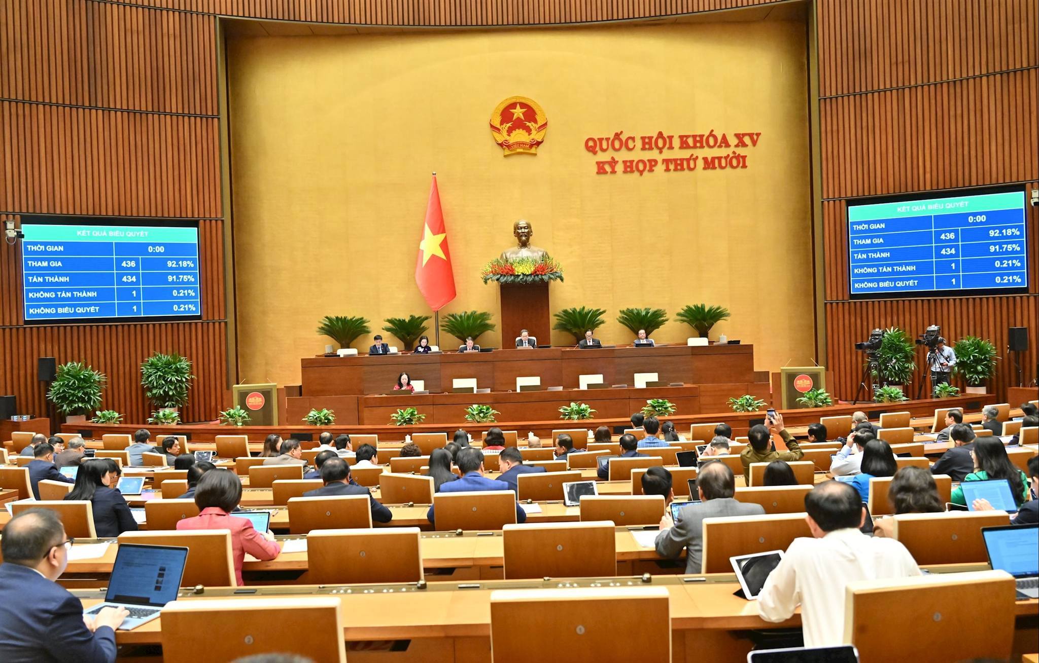 Hồng Đạt19:29 | 10/12/2025Tiếp tục chương trình Kỳ họp thứ 10, sáng nay, 10/12, dưới sự chủ trì của Chủ tịch Quốc hội Trần Thanh Mẫn và sự điều hành của Phó Chủ tịch Quốc hội, Thượng tướng Trần Quang Phương, Quốc hội đã biểu quyết thông qua Luật Bảo vệ bí mật nhà nước (sửa đổi) với 434/436 đại biểu Quốc hội (ĐBQH) có mặt tán thành, đạt 99,54%. Chính phủ thống nhất quản lý nhà nước về bảo vệ bí mật nhà nước. -