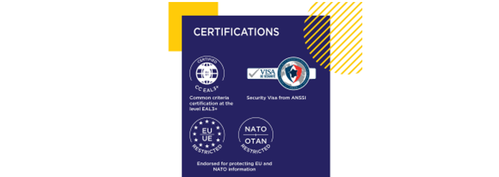 - Được chứng thực bởi Liên minh châu Âu để bảo vệ máy trạm và được các Bộ trong Chính phủ Pháp thông qua.